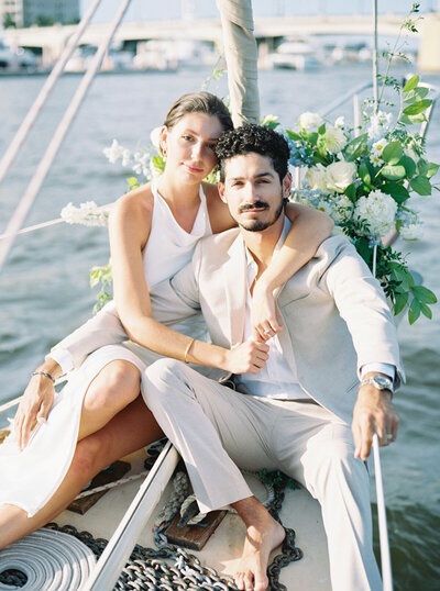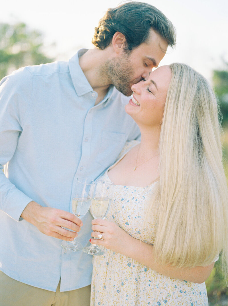 Generally couples pick two outfits for an engagement session: a more formal outfit and a casual outfit. I recommend saving your favorite outfit for later in the session, when couples usually feel more comfortable in front of the camera. And don’t forget to bring a few props such as a custom bouquet, champagne bottle and flutes, or a blanket to sit on if we're going to a park!