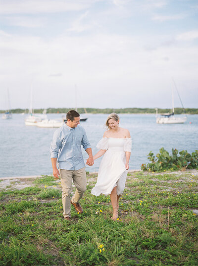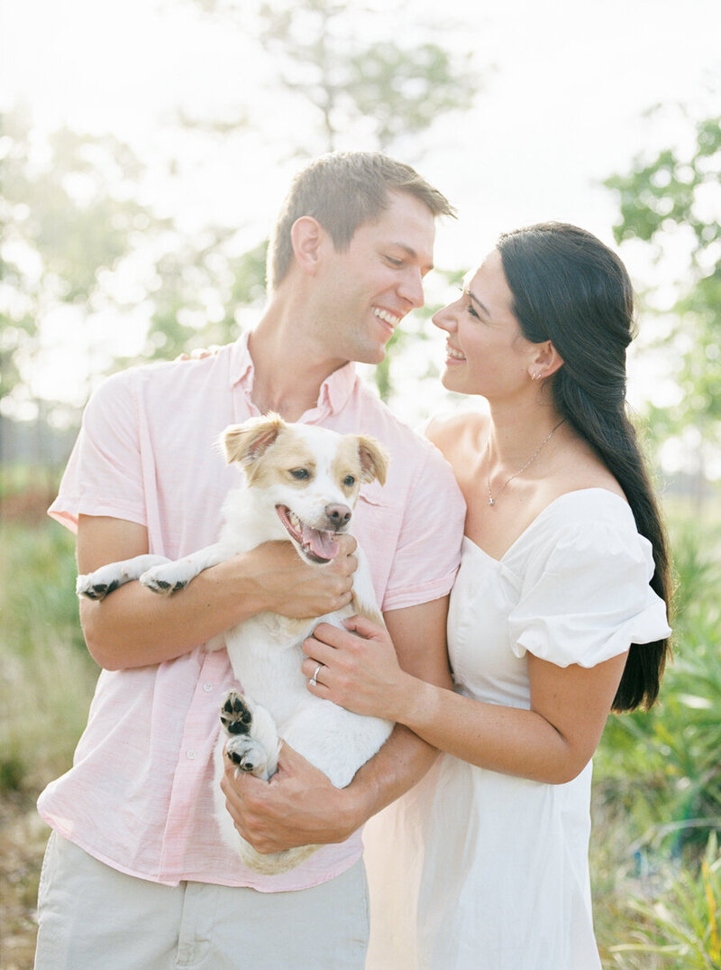 When picking outfits I recommend keeping in mind the word “compliment” rather than “match.” For example, if the groom-to-be is wearing a blue and pink pastel plaid shirt, the bride-to-be may want to choose a long, soft blue dress. It can also be a great idea to choose “color-families,” such as pastels or jewel tones. Pastels and neutrals are always my go-to and will help you achieve the soft and natural look in my images.